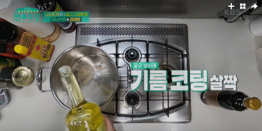 1. 달군 냄비에 기름을 살짝 둘러줍니다.