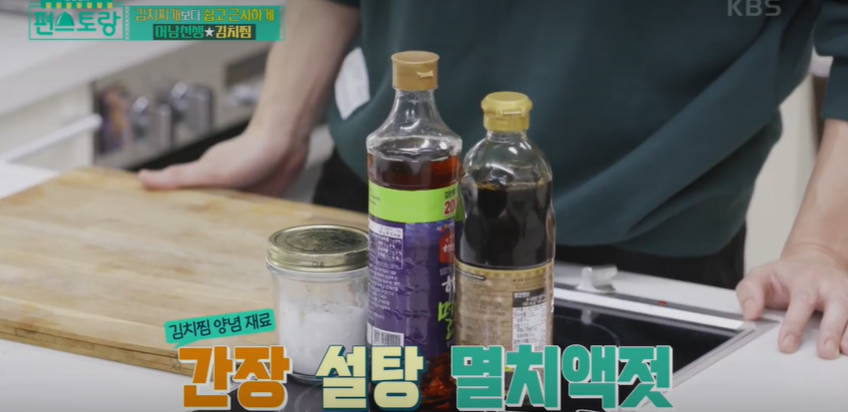 양념은 간장, 설탕, 멸치액젓이 전부이구요. 꼭 맛있는 신김치를 사용해야한다면서 어남선생이 선택한 재료는 '종가집 묵은지'네요. 모자이크로 가렸지만 보여요. ㅎㅎㅎ