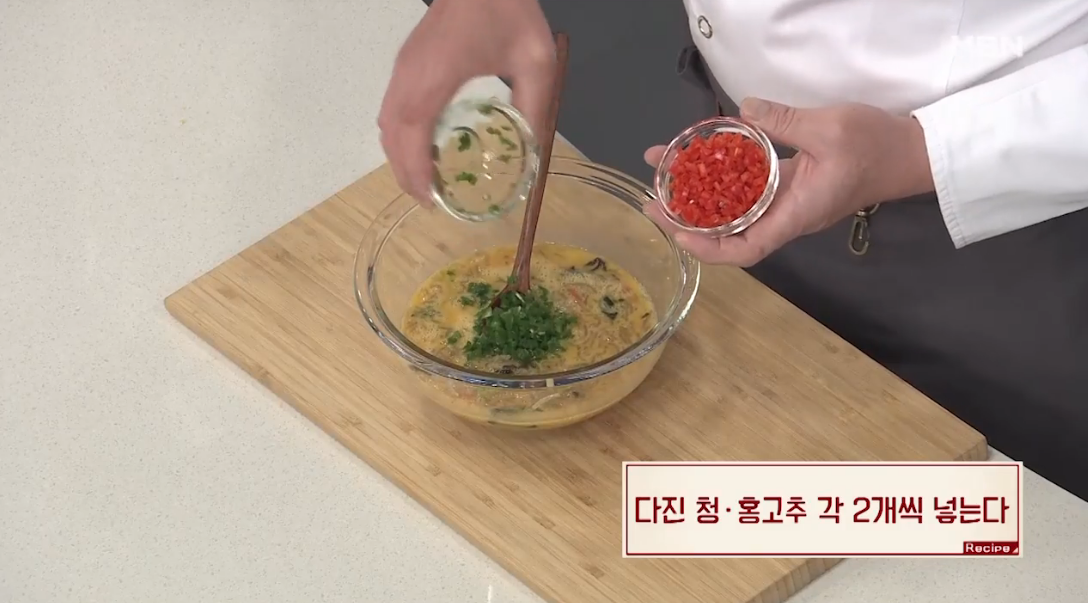 3. 다진 청홍고추 각2개씩 넣는다.